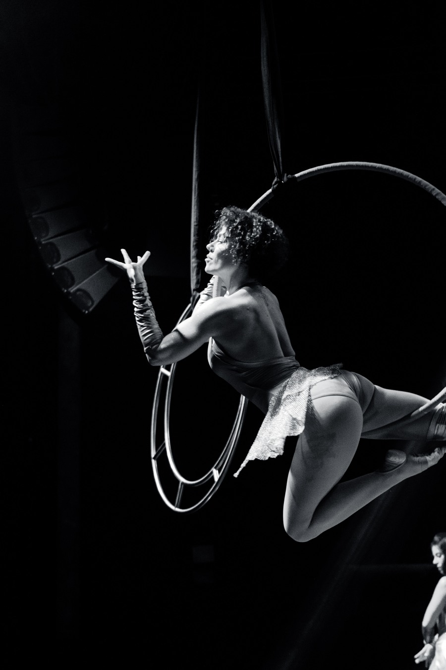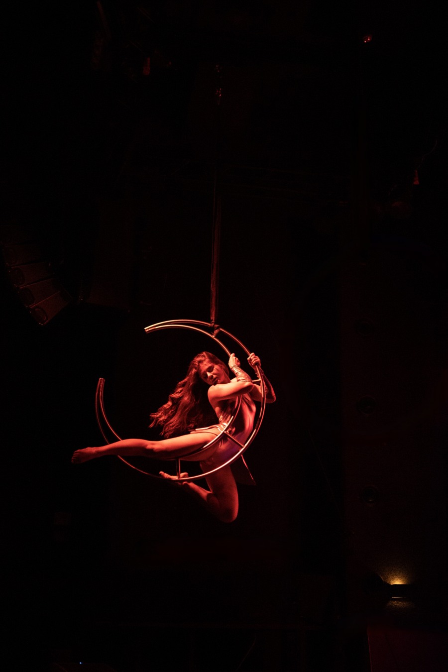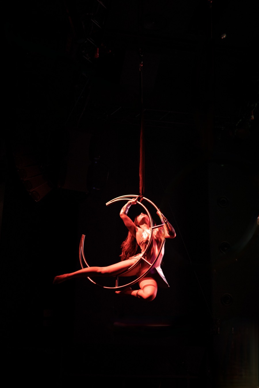 При изпълнението на въздушен обръч, артистът представя уникалнен, елегантен и вълнуващ акробатичен танц във въздуха. Публиката става свидетел както на гъвкави и красиви движения, така и на бързи, спиращи дъха обрати, докато изълнителят се върти и люлее във въздуха. Музиката и визията на артистите може да бъде изцяло съобразена с тематиката на събитието. Гостите със сигурност ще останат силно впечатлени от това незабравимо шоу. Въздушният обръч е подходящ за всички видове мероприятия, като изпълненията варират, в зависимост от наличните височина и пространство.