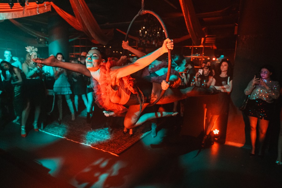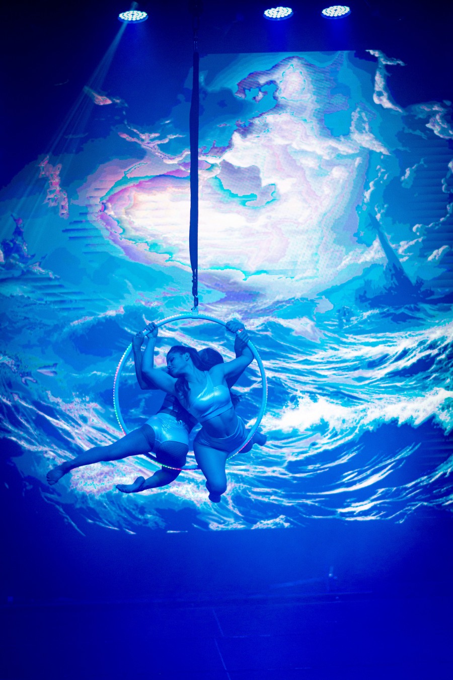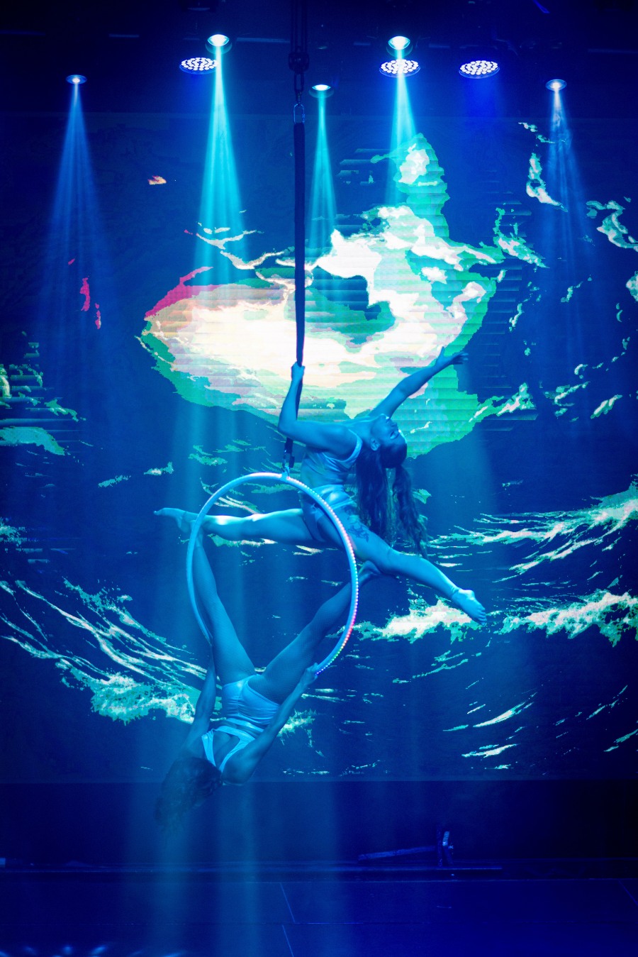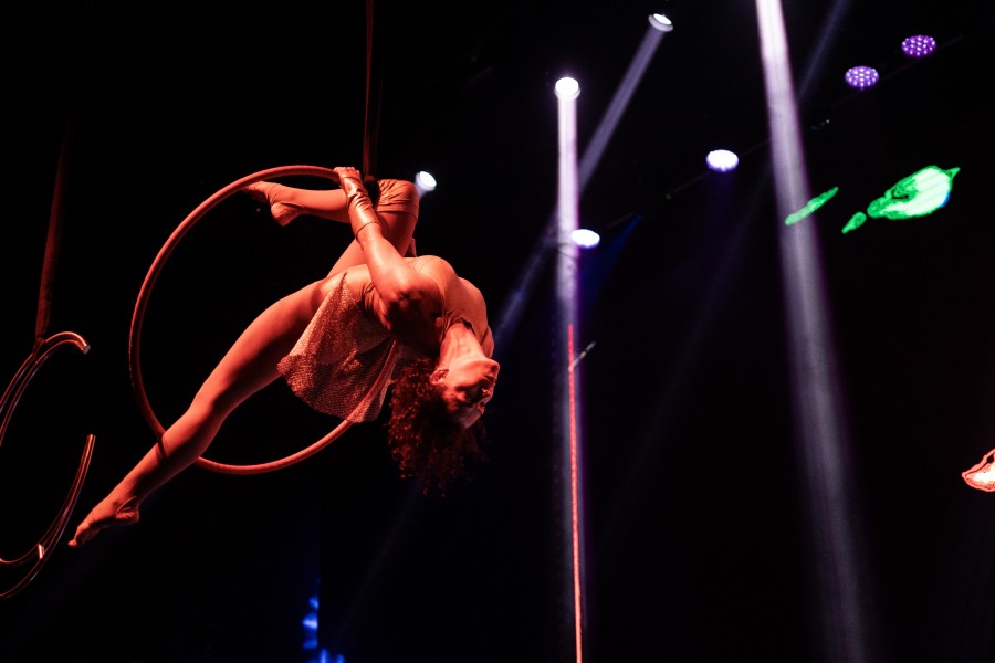 При изпълнението на въздушен обръч, артистът представя уникалнен, елегантен и вълнуващ акробатичен танц във въздуха. Публиката става свидетел както на гъвкави и красиви движения, така и на бързи, спиращи дъха обрати, докато изълнителят се върти и люлее във въздуха. Музиката и визията на артистите може да бъде изцяло съобразена с тематиката на събитието. Гостите със сигурност ще останат силно впечатлени от това незабравимо шоу. Въздушният обръч е подходящ за всички видове мероприятия, като изпълненията варират, в зависимост от наличните височина и пространство.